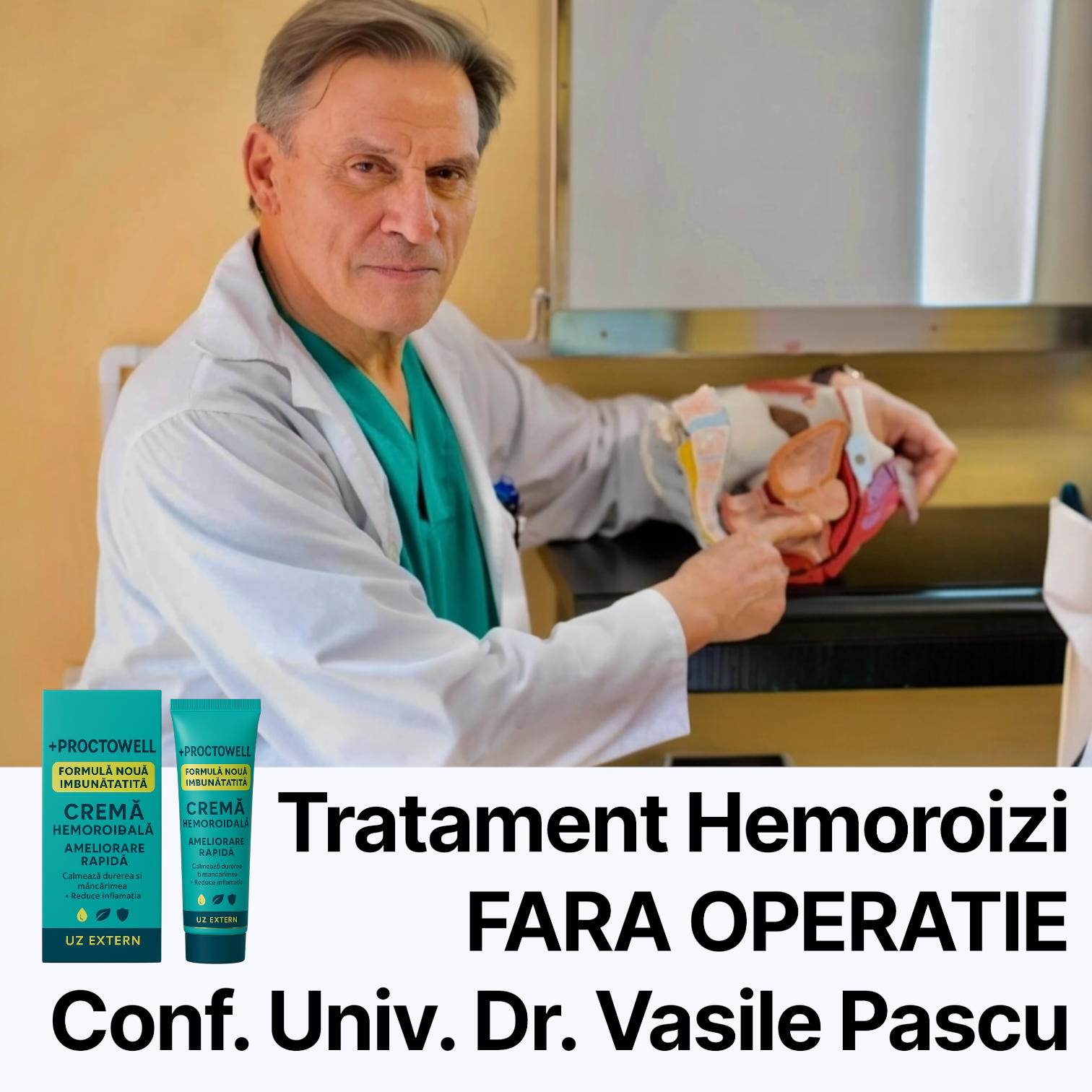 M-am adresat unui medic, și el mi-a sugerat să încerc noul remediu Proctowell (doctorul era tânăr și, probabil, încă crede că medicina ar trebui să fie pentru oameni, nu pentru colectarea banilor!) Proctowell m-a ajutat din prima: durerea și usturimea au dispărut imediat, umflăturile s-au redus literalmente în 10-15 zile. Dar am continuat întregul curs așa cum mi-a prescris doctorul 80 de zile. După 2.5 luni, am uitat complet de hemoroizi, chiar nu am observat cum! Am suferit de asta mai mult de 10 ani, și totul a dispărut! Aveam și probleme cu prostata, dar au trecut și ele, poate pentru că am început să mă mișc mai mult? Mă simt minunat, ca în tinerețe!